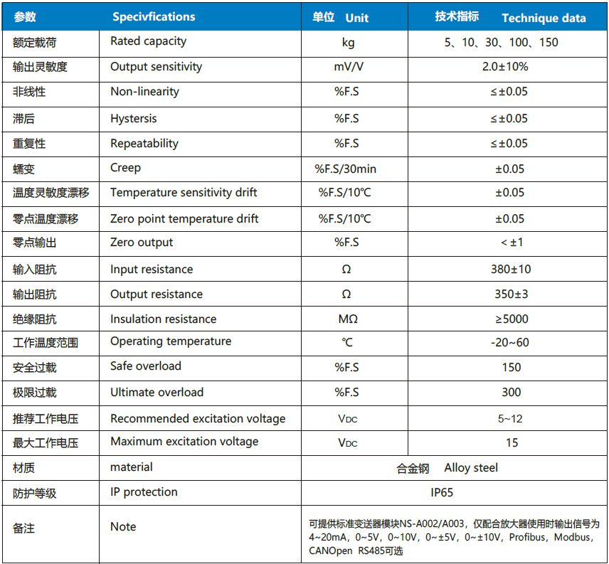 NS-TH5 系列稱重傳感器,采用優(yōu)質(zhì)鋁合金制作;