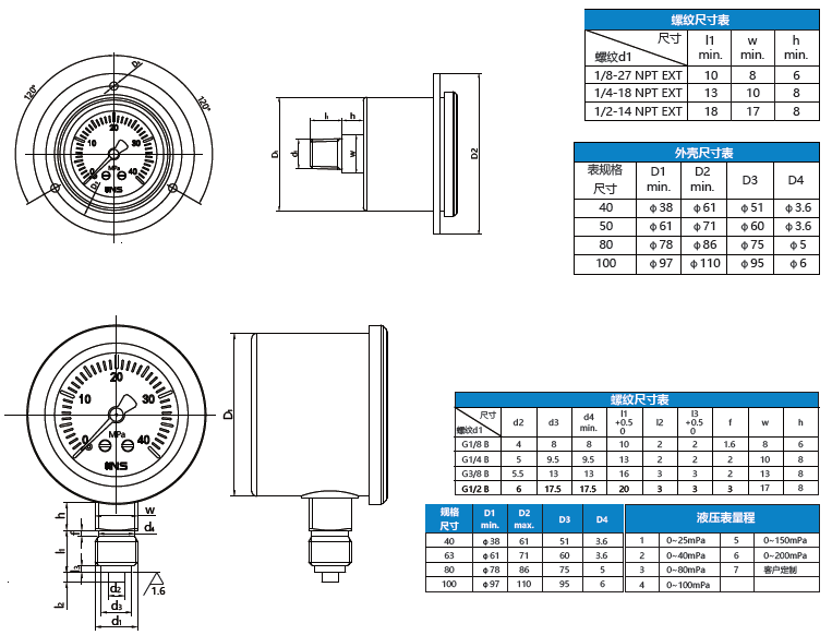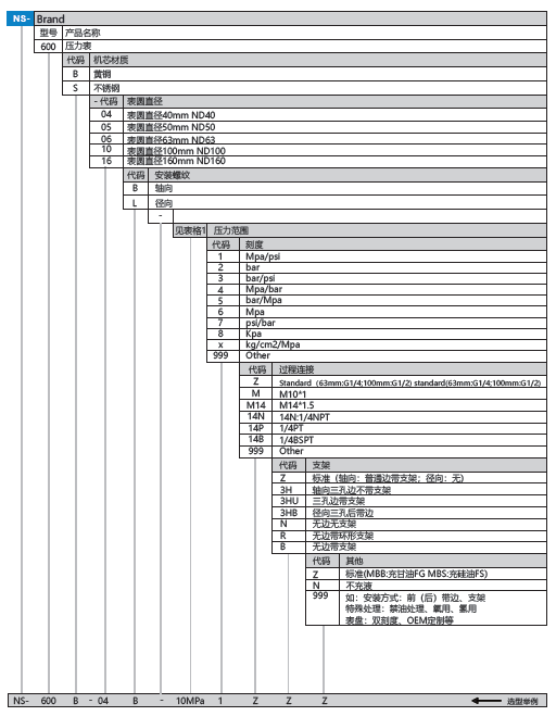 表盤直徑:ND40、ND50、ND63、ND100、ND160mm