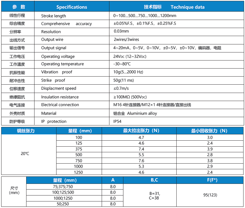 多種信號輸出:0~5V,0~10V,4~20mA,RS-485,